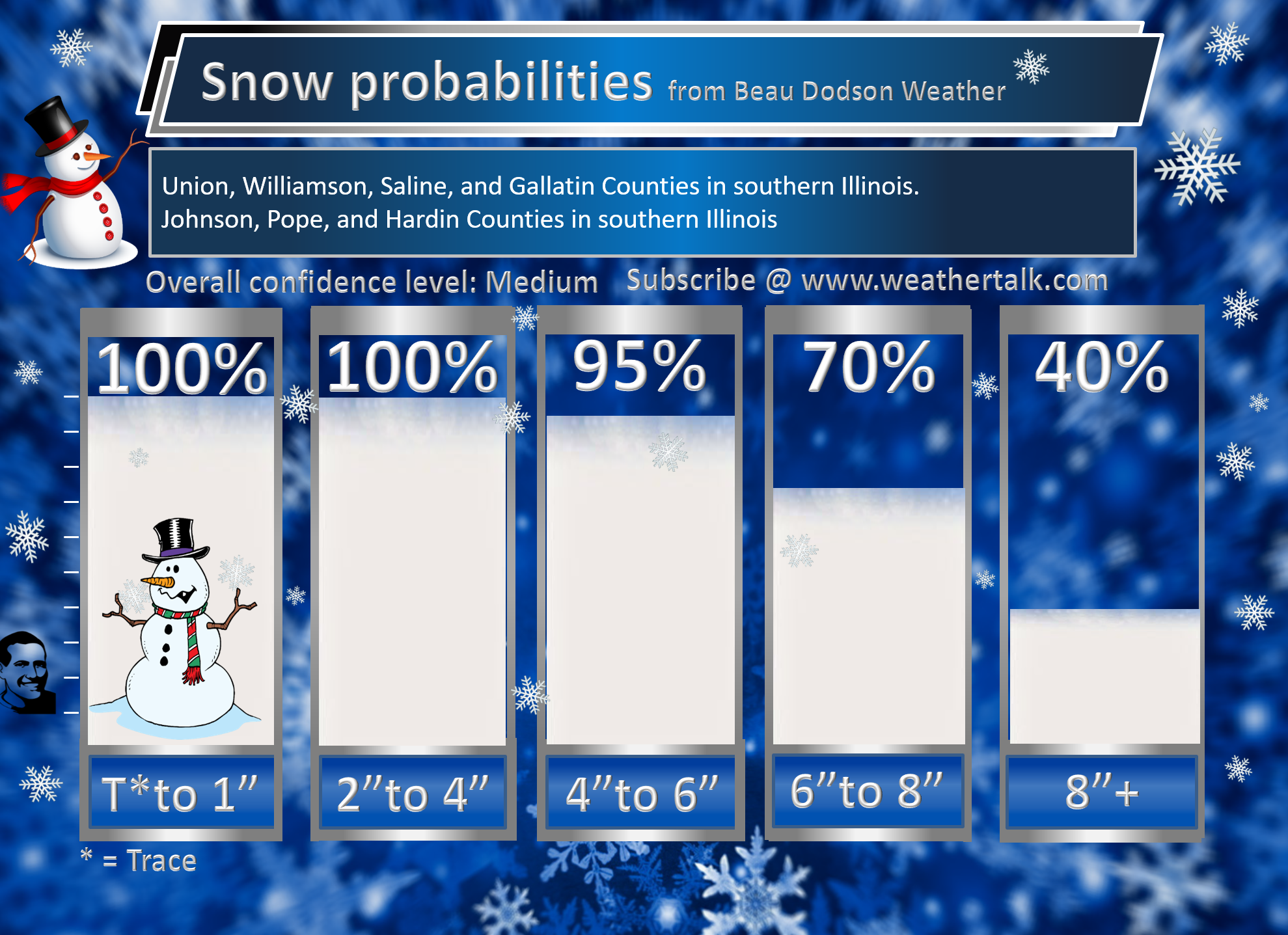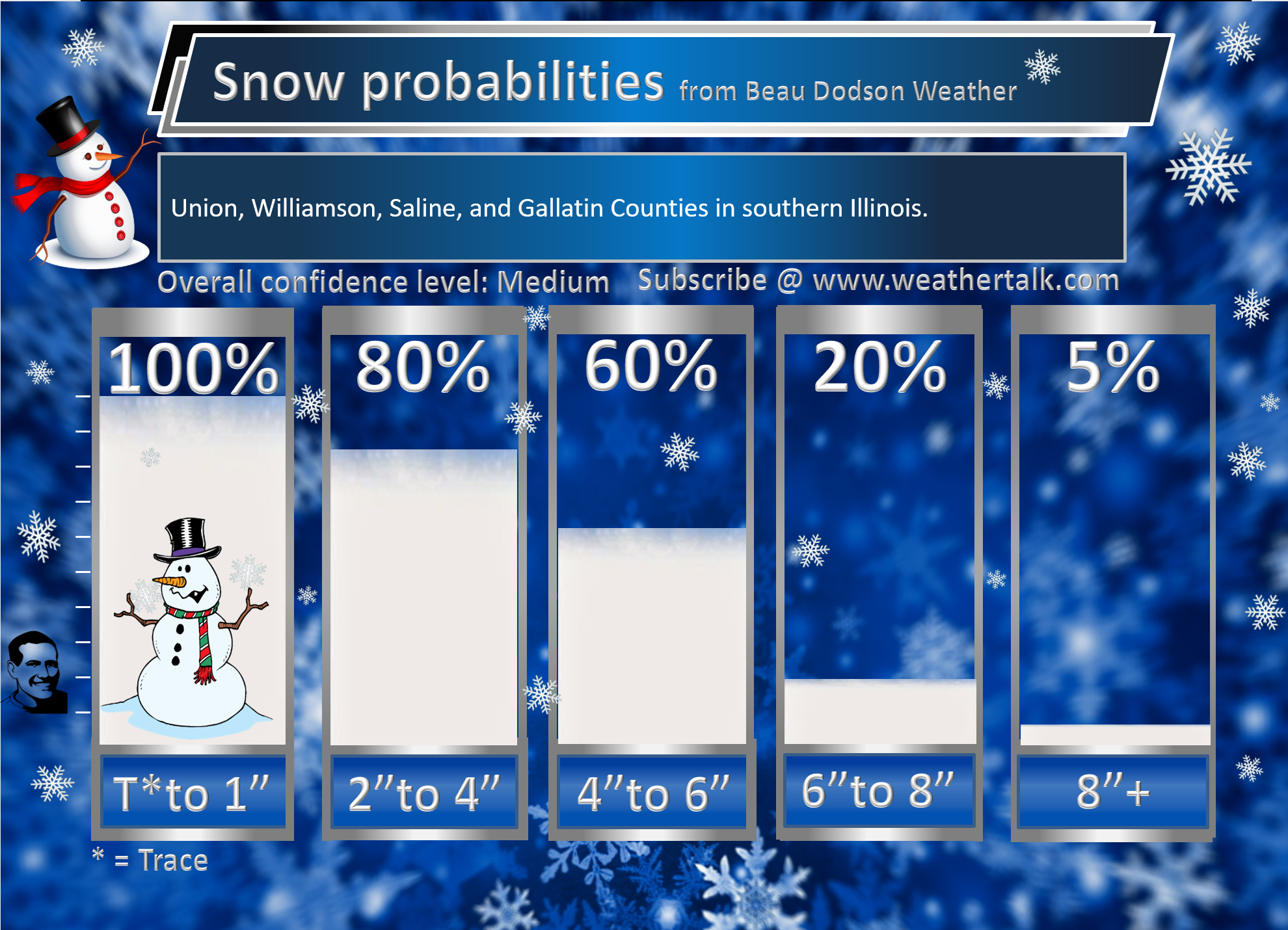 A widespread 1 to 3-inch snow event is forecast. I did increase that from previous wording of a widespread trace to two inches. I increased it an inch.