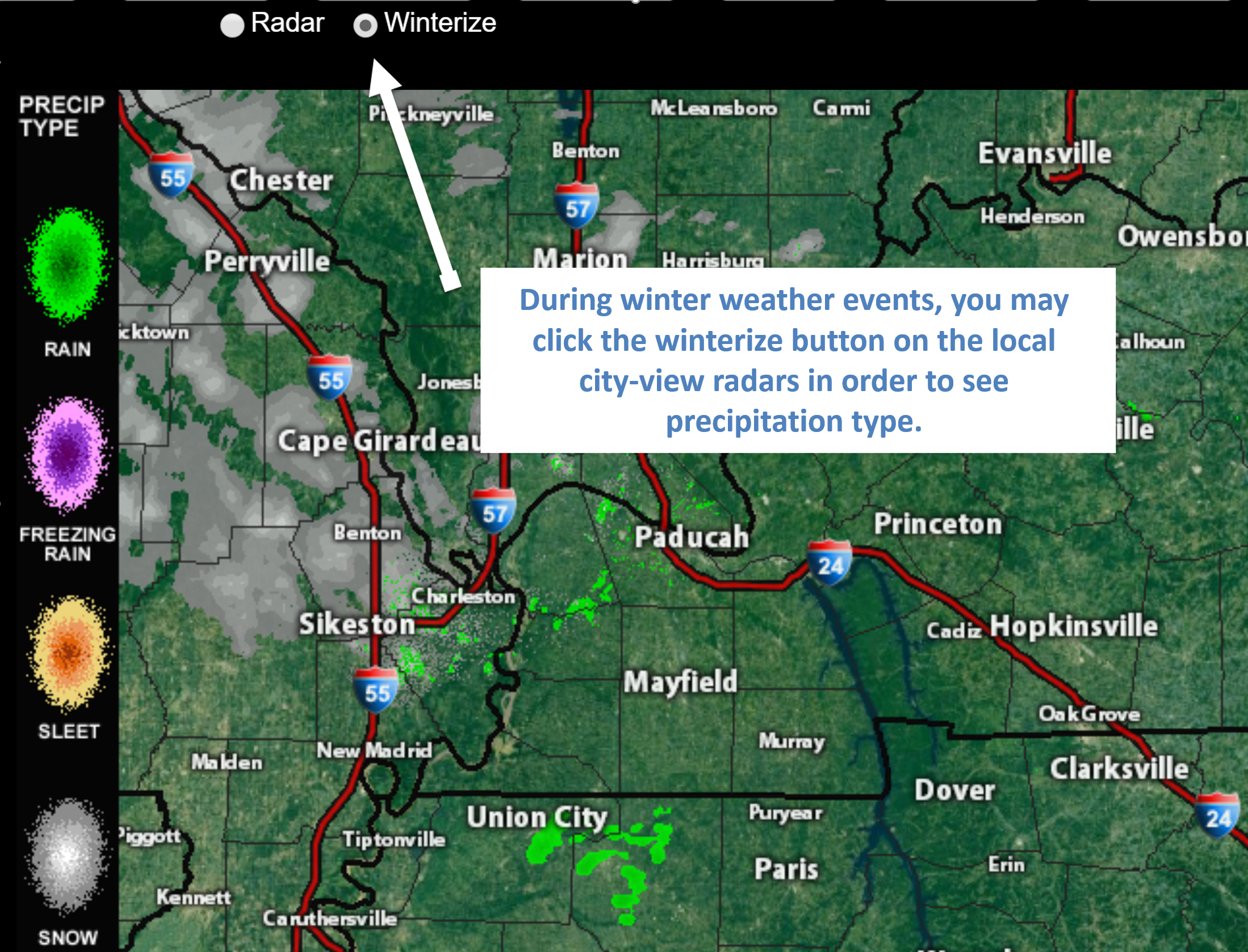 Click to enlarge this example of how to winterize your city-view radar.