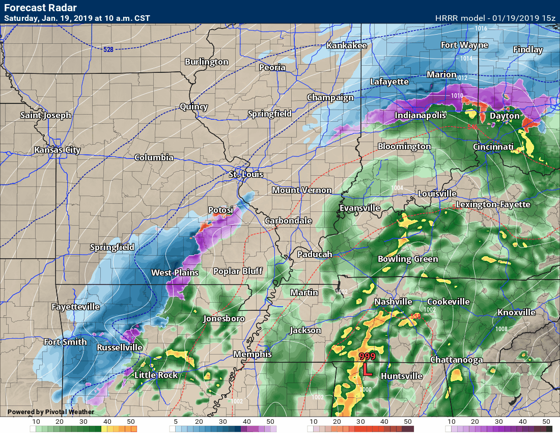 Temperature range: MO Bootheel 26° to 28° SE MO 24° to 28° South IL 24° to 26° West KY 24° to 26° NW TN 25° to 30°