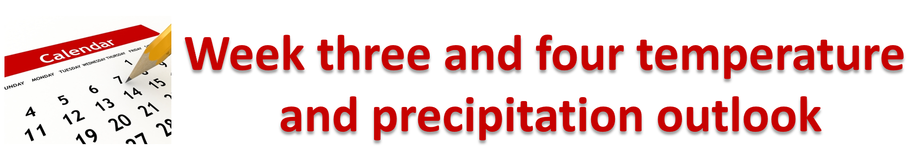 - Go to weeks one, two, three, and four temperature and precipitation graphics