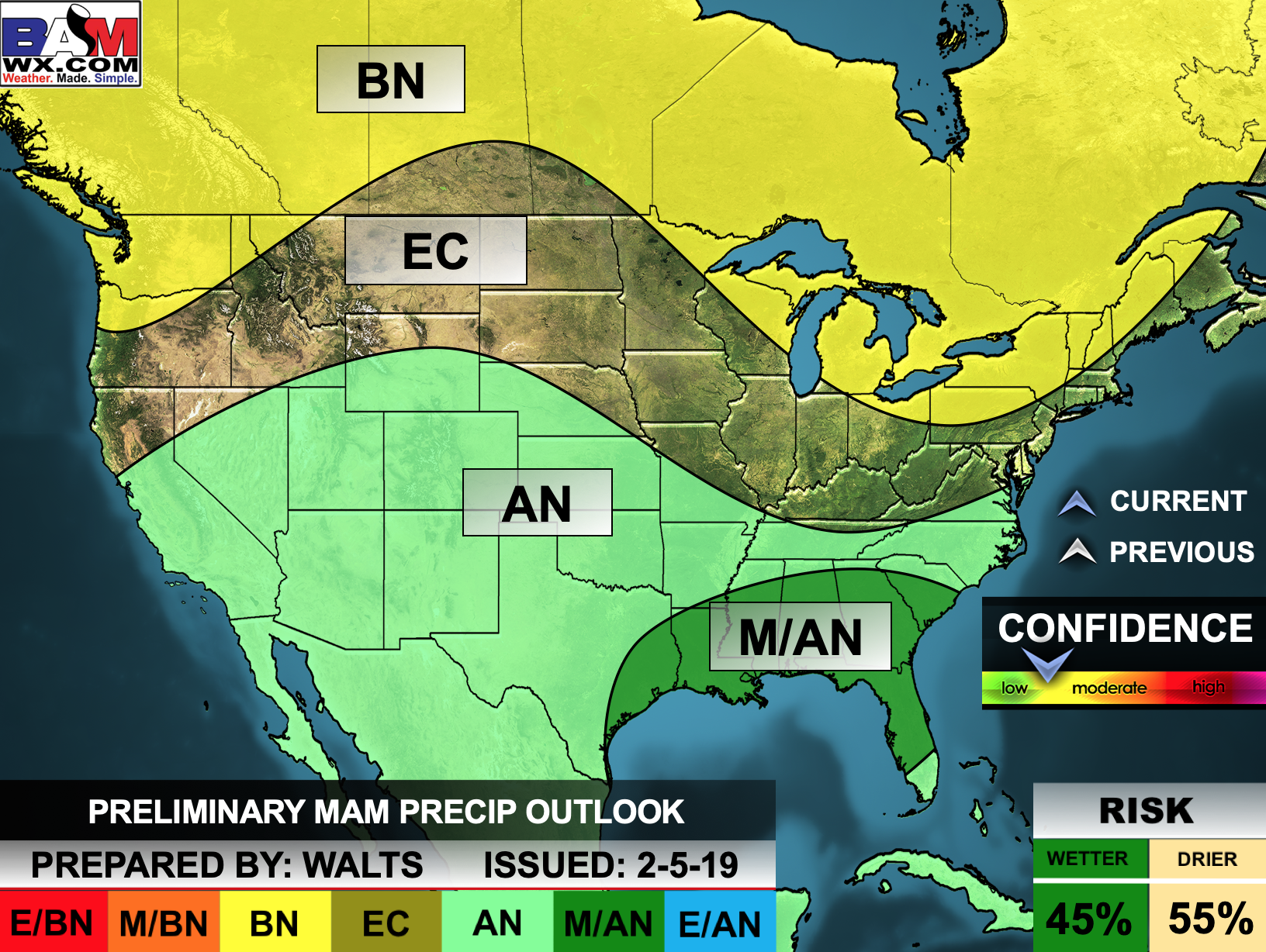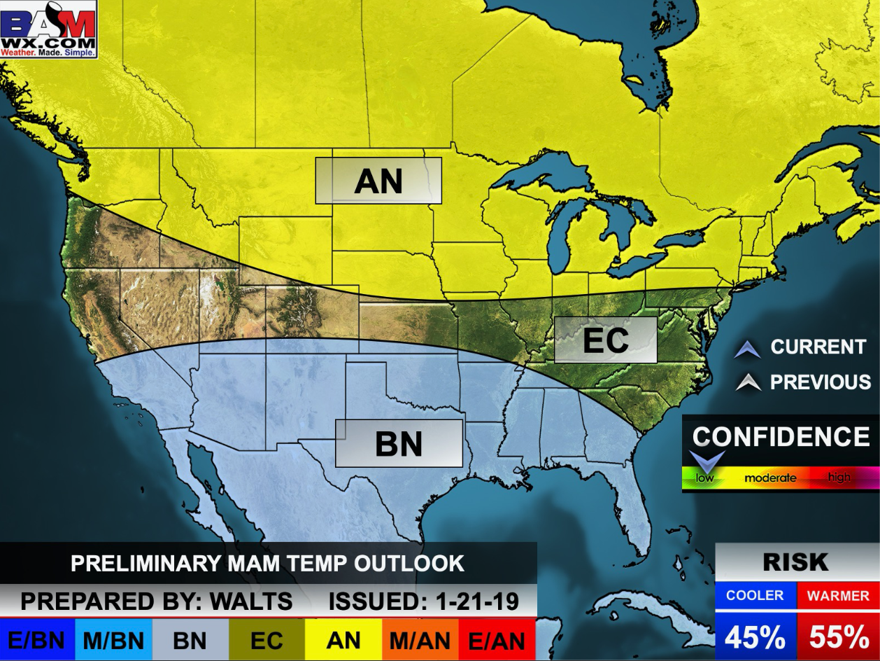 Here is the preliminary March, April, and May temperature and precipitation forecast.