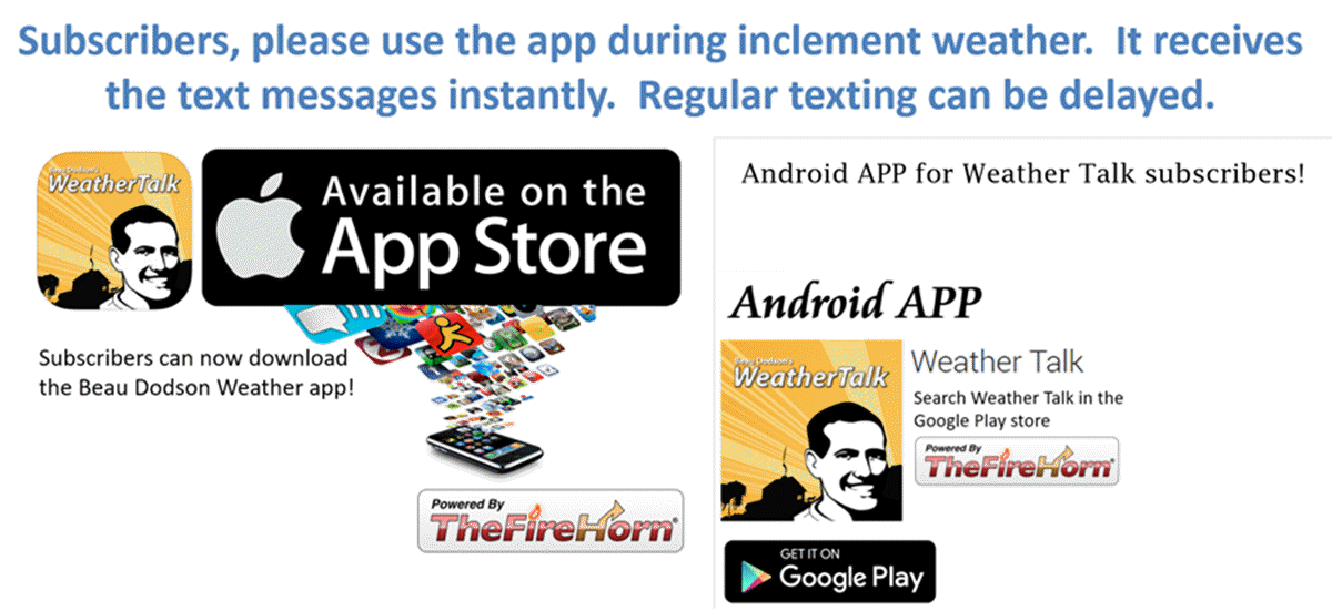 - USE THE APP. Verizon and ATT have been throttling text messages. The app receives the same messages instantly. Texts can take longer. Please, use the app. It is under Beau Dodson Weather in the app stores.