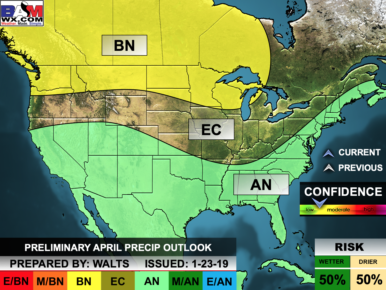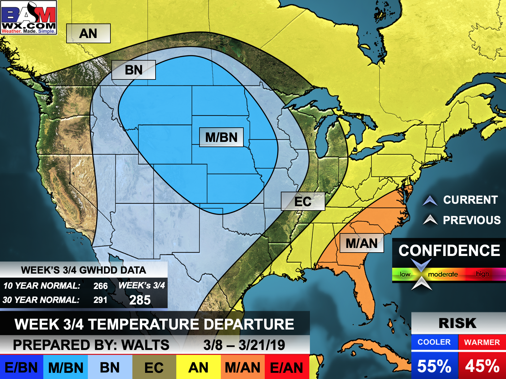 Confidence % that it will be above or below normal?