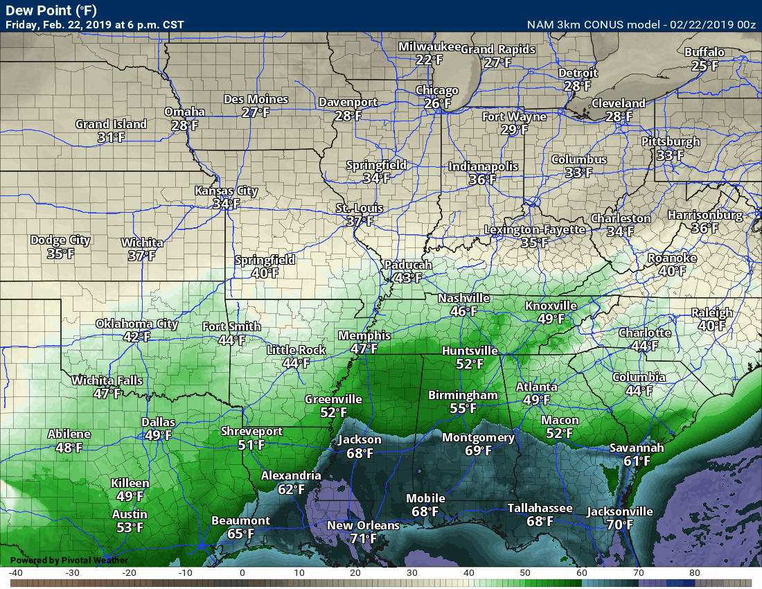 Dew point is a measure of moisture. We look for 58 degrees and above during the winter months when considering severe weather forecasting.