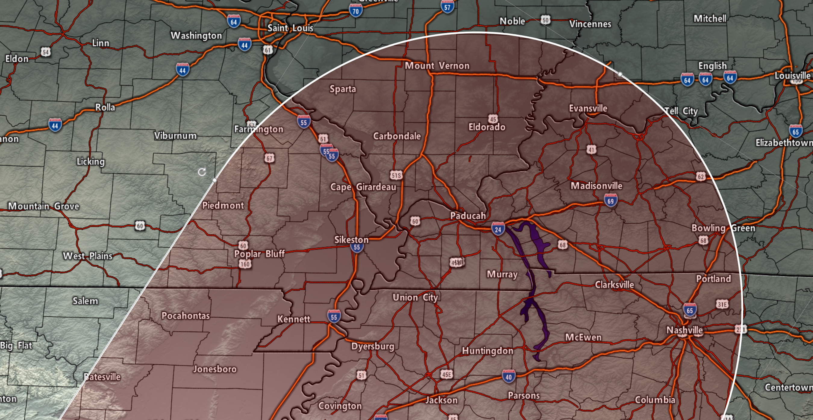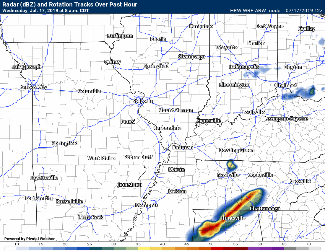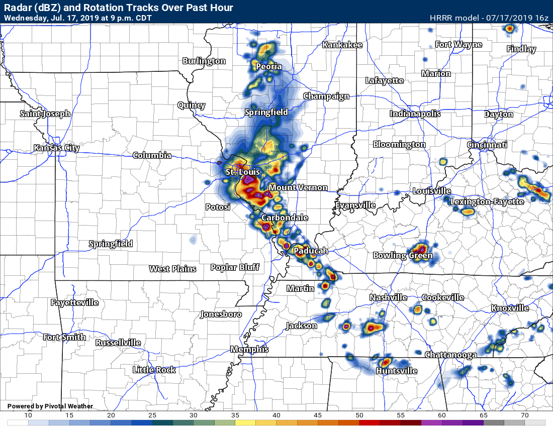 7:20 PM Johnson and Pulaski Counties. Ballard and Mississippi Counties. Radar shows incoming storms with isolated patches of 50+ mph winds. Wet ground conditions could make it easier for a tree to topple. Be aware as they move east at 15 to 20 mph.