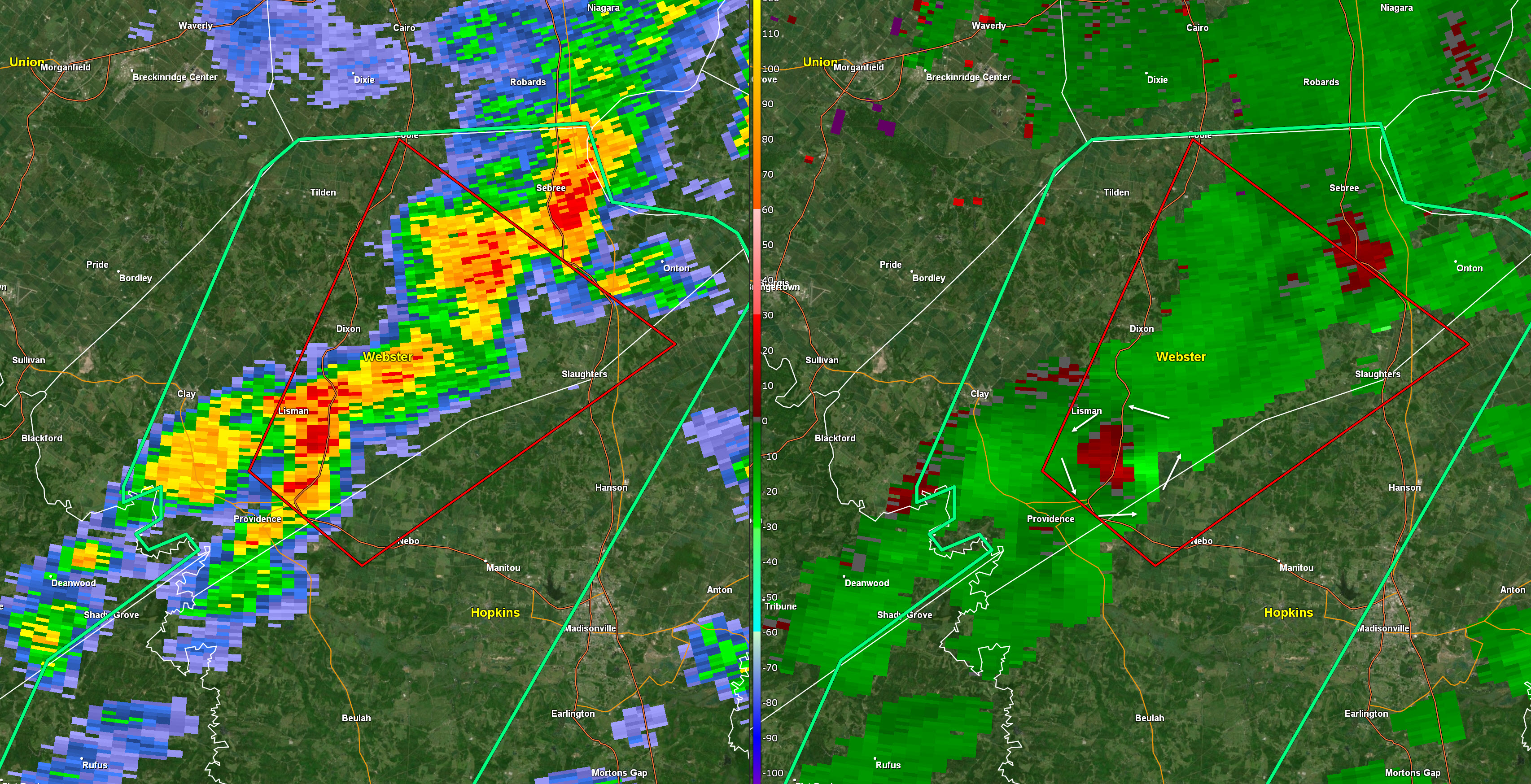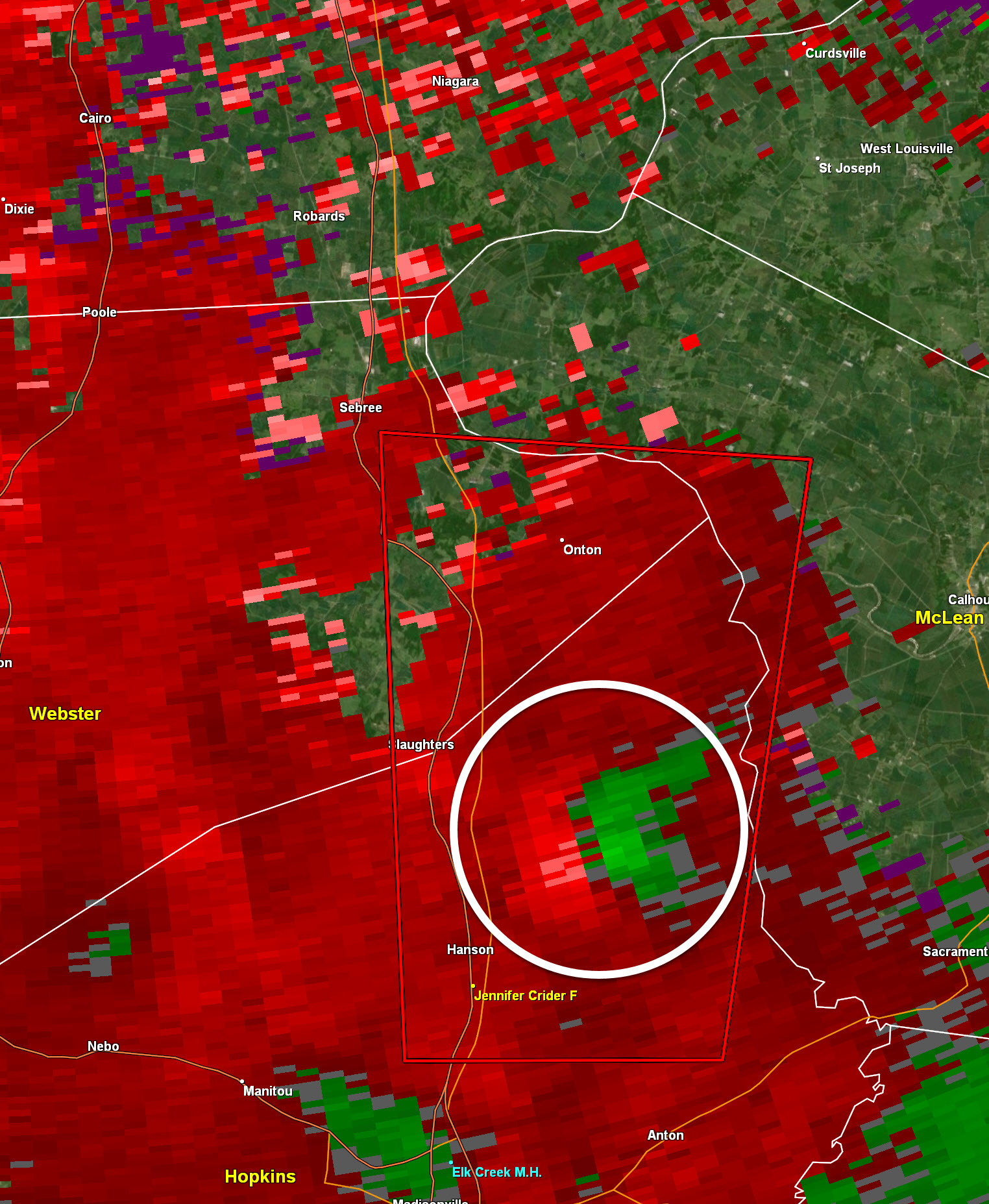 Union, Crittenden, Lyon, Trigg. Storms are moving east towards your county. They are weakening but if they hold together a few storms could produce isolated high winds. We are losing the heating of the day. They should weaken with time.