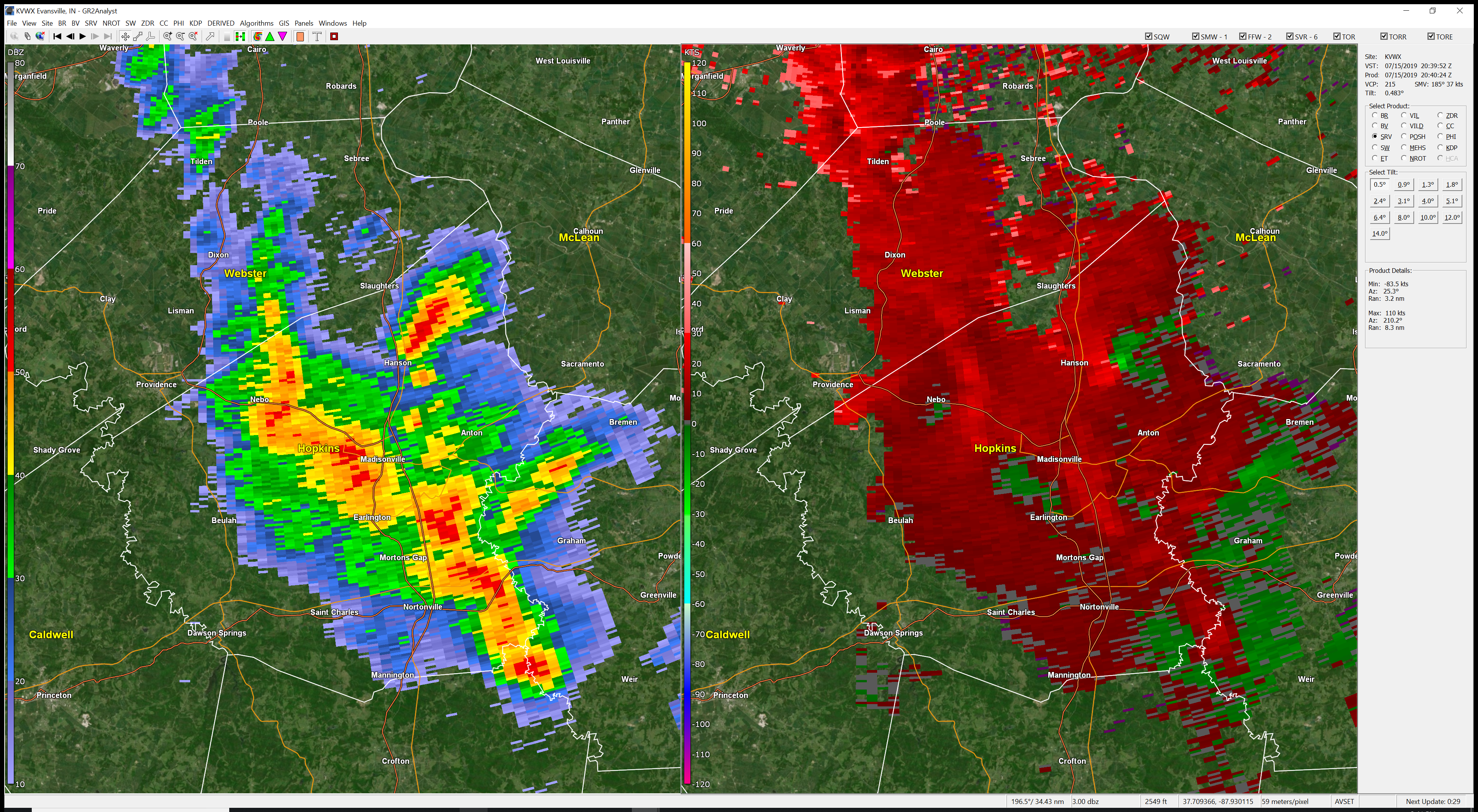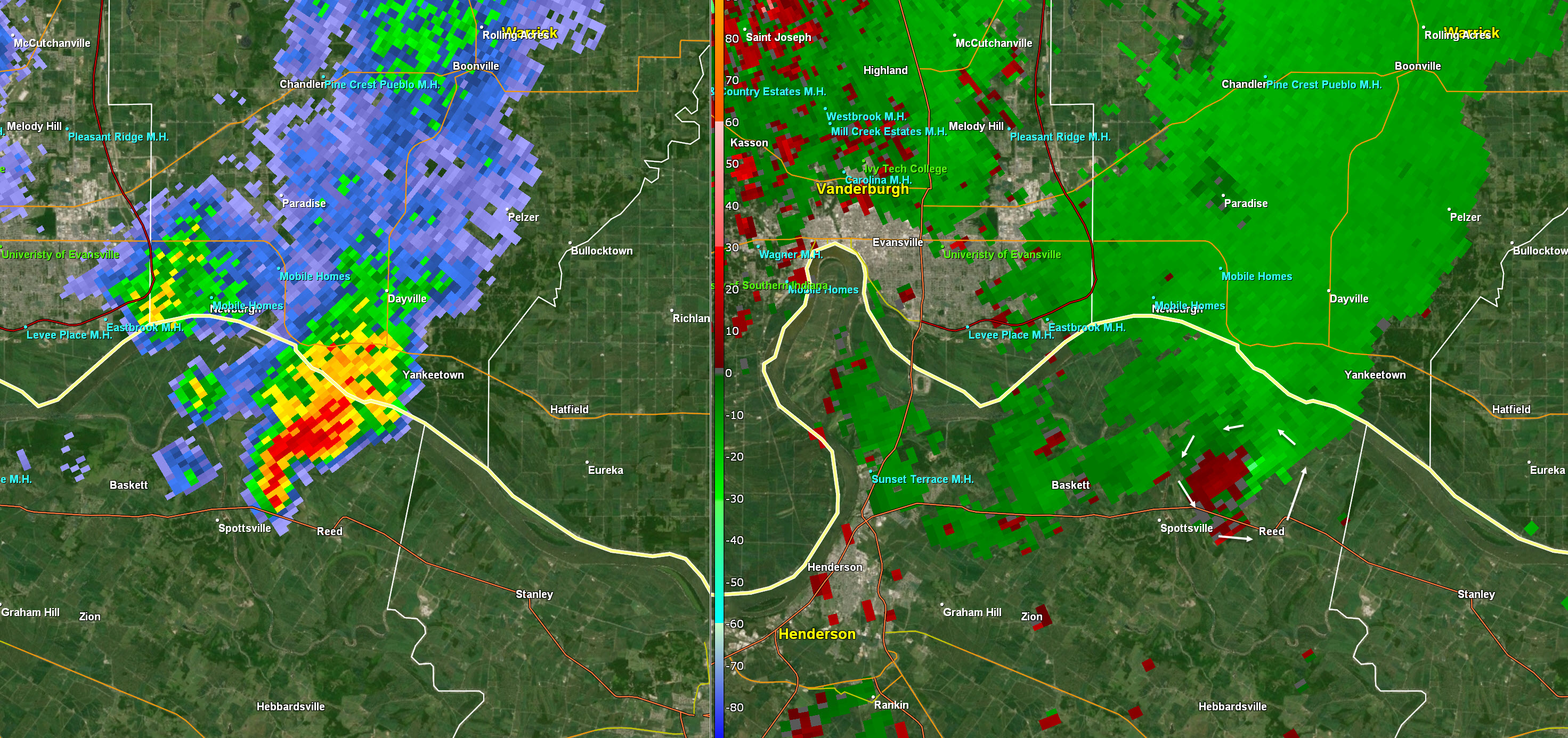 Massac and McCracken. Storms approaching from W NW moving E SE at 20. There have been reports of isolated wind damage. Slow movers. Heavy rain. Be aware.