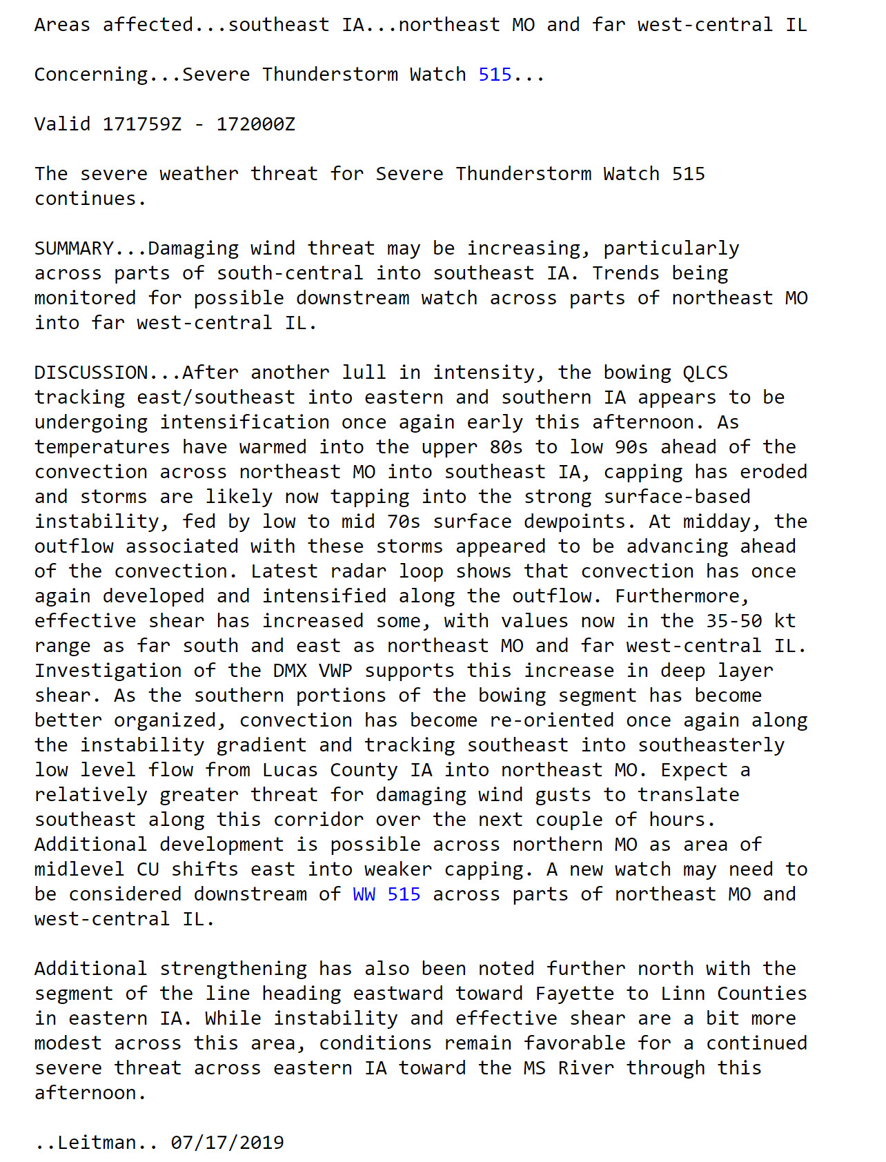 Clickable watches and warnings can be viewed on the local city-view interactive radars (link above). Be sure and turn on the warnings above the local radars.