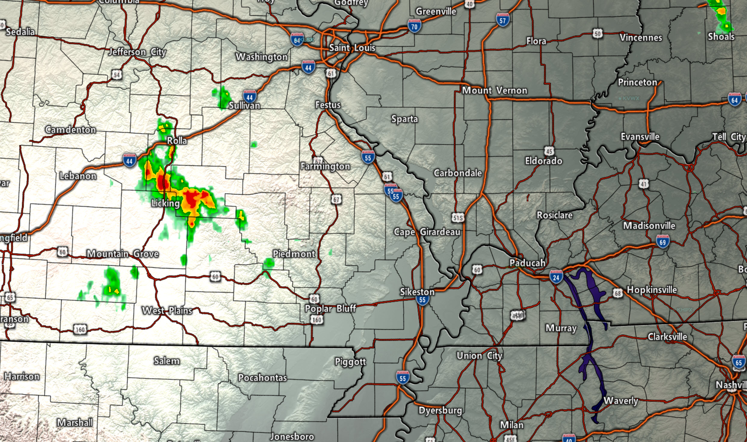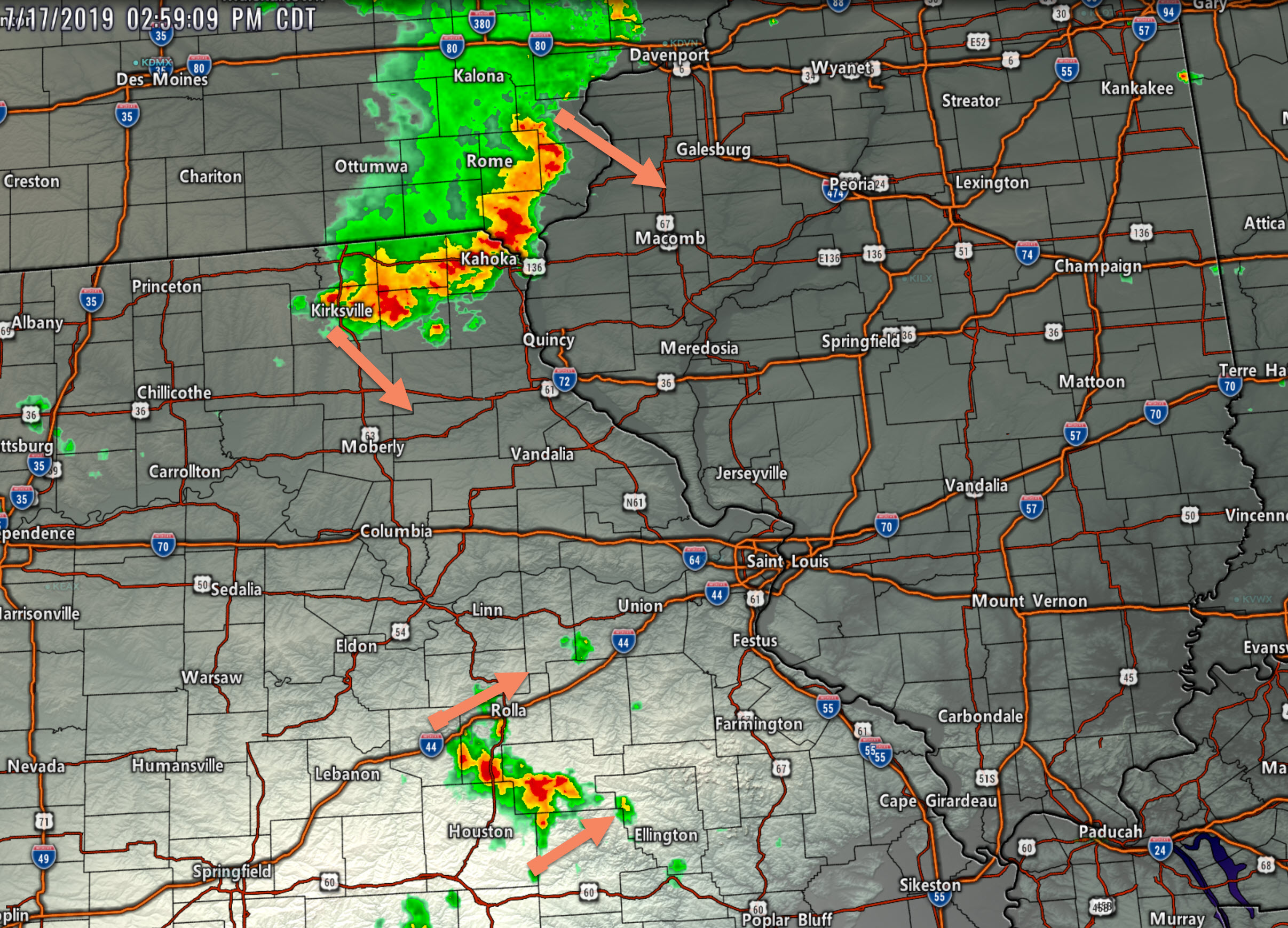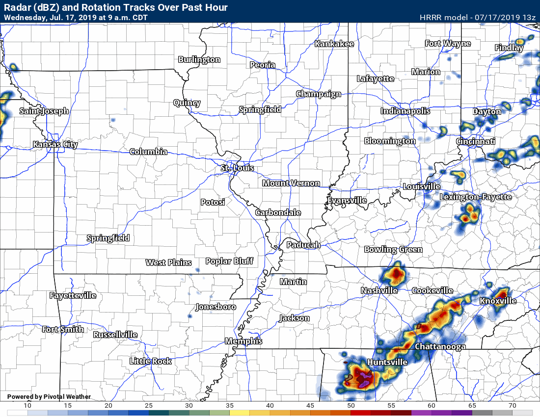 There are some storms in southern Missouri. Those are currently west of my forecast zone.