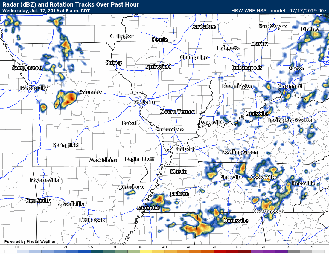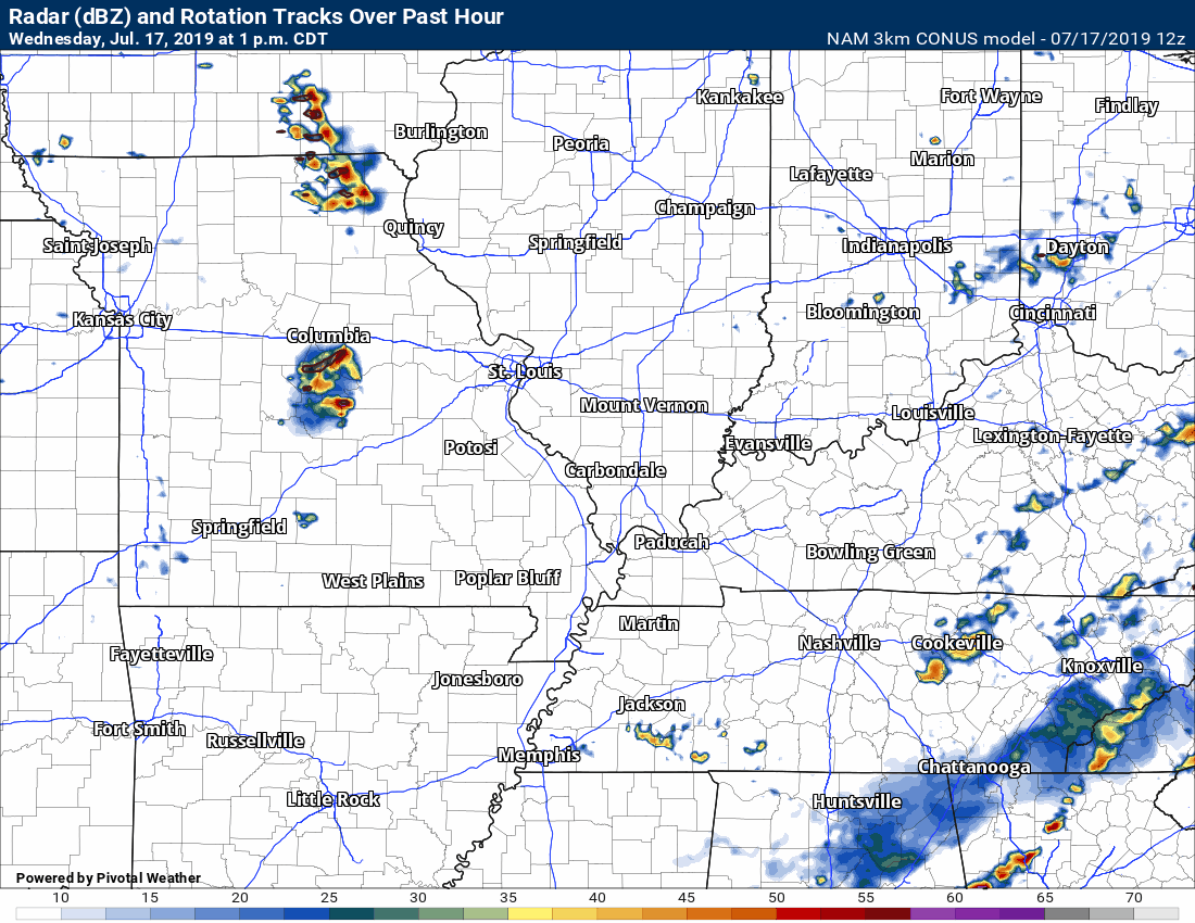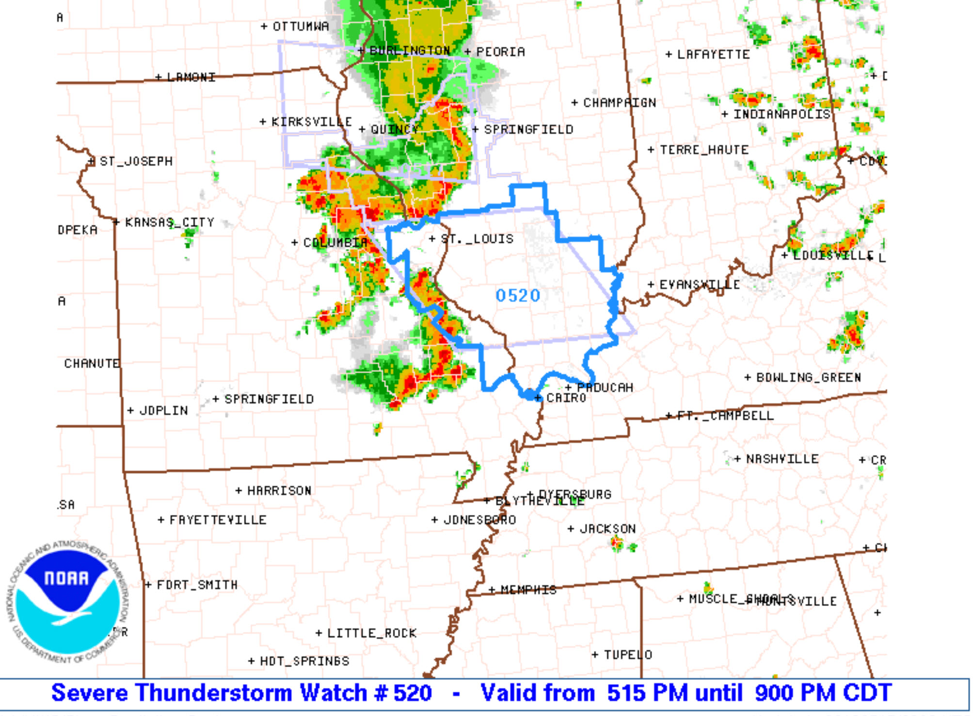There are some storms in southern Missouri. Those are currently west of my forecast zone.