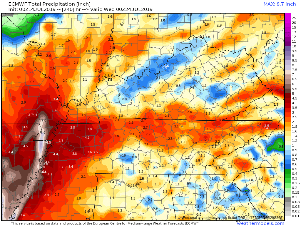 Higher PWAT numbers mean heavier rain.
