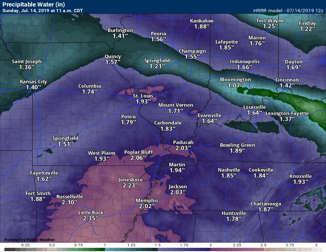 PWAT numbers are extremely high. Heavy rain will occur under any thunderstorms that form in our local area.
