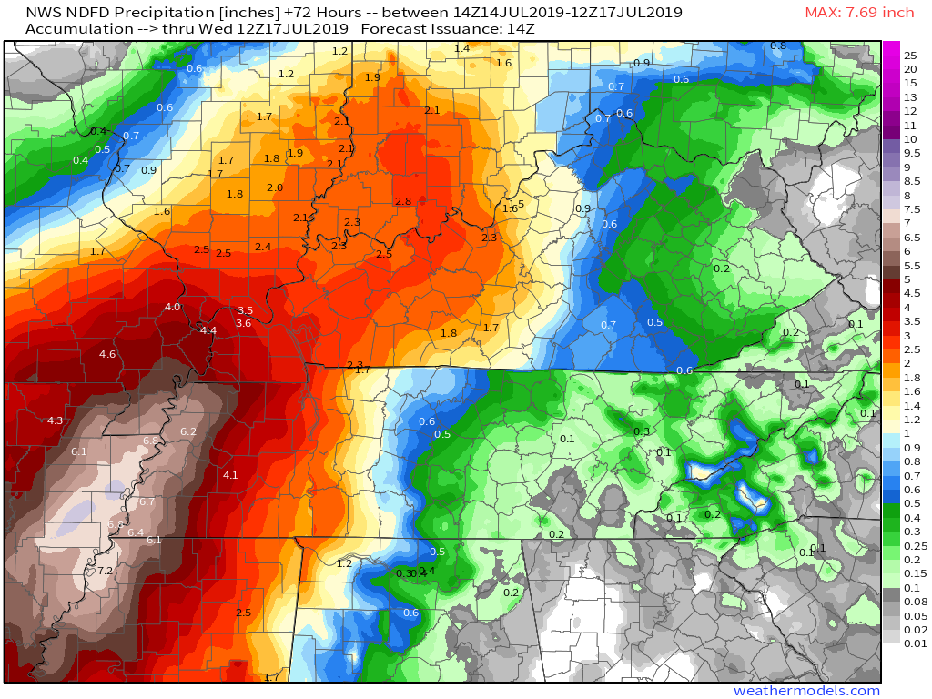 Butler, southern Stoddard, Dunklin, western New Madrid, and Pemiscot. Heavy rain is training over your counties. Rain totals in excess of two inches will occur in some locations.